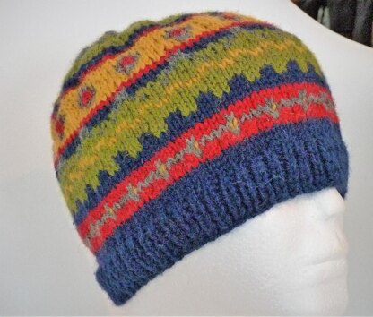 This hat is knitting with 5 colors, you can chose your own colors or chose the colors as proposed in the pattern.