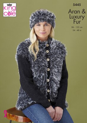 Jackets & Headband in King Cole Fashion Aran & Luxury Fur - 5445 - Downloadable PDF