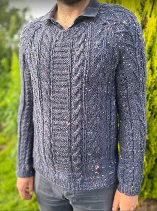 Knitted from bottom up, body and sleeves worked separately and then joined at yoke to work in the round with raglan shoulder shaping, V shaped neckline.
