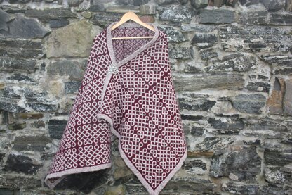 My Jacobite Queen Wrap is a warm and feminine knit that will look stylish over a winter coat or draped over a chair. Its knitted in the round using a stranded knitting technique and is then steeked to create the open flat wrap. Its actually easy knit, however the steeking does require some experience.