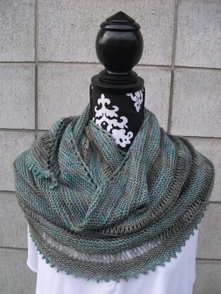 A crescent shaped shawl knitted in one piece with written instructions.