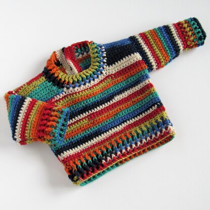 Jamie is an easy pattern for a sweater and hat. Crocheted in DK cotton and using dc for the main part and a textured rib using front post and back post trebles.