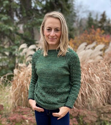 This relaxed-fit pullover comes to life with a nature-inspired lace pattern carried over its lower body and 7/8-length sleeves. The sweater is worked in a fine fingering 100% superwash merino wool, allowing it to be worn alone or over another layer.