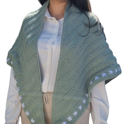 Jasmine Path Shawl is a soft, asymmetrical triangle shawl that grows from just 3 stitches into a graceful wrap full of texture and charm. Simple increases shape the body, while delicate embroidered jasmine flowers add a handmade touch of magic. Whether you’re a beginner knitter or looking for a relaxing project with a floral twist, this shawl is a beautiful journey from cast-on to cast-off.