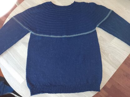 JASPER - an attractive long sleeved pullover with rounded yoke in plain knitting and furrowed pattern in wool. Welt, cuffs and neck band are in a ribbed pattern. The yoke is in the furrowed pattern. The jumper is worked in rounds until armholes where stitches for the sleeves are joined in and the yoke is worked also in rounds. The original model was made with a charming second coloured stripe due to the dark blue colour was in two dye batches. But also attractive plain coloured. Required skill level from 1 (basic) to 5 (advanced): 4. The measurements given throughout the pattern are all in cm as well as inches.