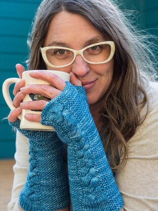 This is the hand-warming part of a series of patterns I’ve been working on using squishy garter stitch and big loopy cables. The mitts are meant to be worn a bit slouchy and can be made as long as you’d like them to be.