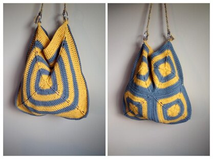 This is for downloadable PDF Pattern to make a crochet cotton tote bag, made using two squares sewn together.