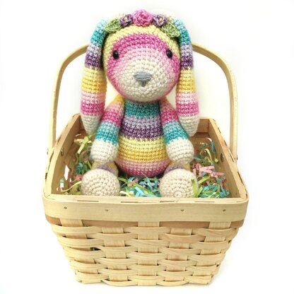 What's better to tuck inside an Easter basket than a sweet, cheerful bunny? Meet Jelly Bean! She's sure to get lots of smiles on Easter morning. She would also make a perfect addition to a baby nursery or a gift for any bunny lover. Jelly Bean was made with Scheepjes Stone Washed yarn (sport weight); however, her pattern works up well with many different color combinations or even self-striping yarn.