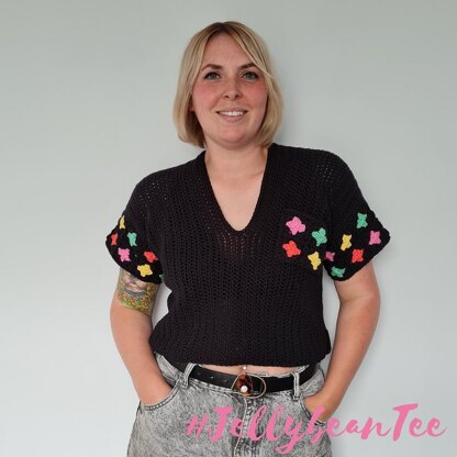 The Jellybean Tee is a super cute and fun way to incorporate more crochet into your summer wardrobe. Designed with a cropped, boxy fit, with mini granny square sleeves and adorable pocket detail, she'll be your favourite top to keep you company through the warmer months. The pattern is completely customisable to your preferred length and you can make the sleeves as fitted or loose as you prefer. Add the optional pocket for a really unique touch and you're all set for summer days in the park!