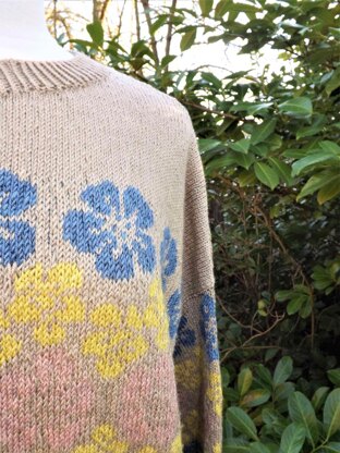 Jenle is a pullover worked from the bottom edge and up with a 4-colored pattern on the body and sleeves. The pullover has long sleeves and slanting shoulders.