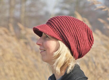 The pattern for [this slouchy seamlessly knit hat][1] has been written with advanced knitters in mind, who are already familiar with working short rows and a provisional cast-on. The variety of stitch patterns, Weave Pattern, Ribbing and Chain Pattern, makes it a very interesting and enjoyable knit.