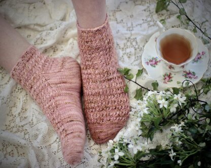 Her pretty lace (using just a few simple stitches) snuggles onto your feet to keep your toes cosy, and her shorter length gives a light-hearted vibe to your outfit.