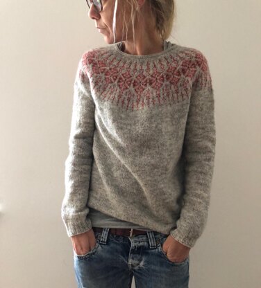 Jingle is worked seamlessly from the top down. First some short rows are worked back and forth to create a higher back neck and then the yoke is worked top down, in the round, to sleeve separation. Some last short rows are worked to finish the yoke shaping right before sleeve stitches are placed on hold, then the body is worked in rounds down to the hem. Sleeves are worked top down to the cuffs last. No finishing required.