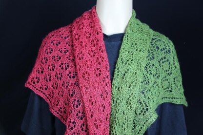 Jolanda is a faroese shawl knit sideways in three colors and different lace patterns. The center section is shaped with short rows to help the shawl stay on your shoulders. Jolanda is named after a very good friend of mine. She will be moving to Italy soon, that is why I chose the colors of the Italian flag for her shawl. We met in a forum for the computer game "The Sims 2" and when we found out how close to each other we lived, we soon became friends. Not only do we both love gaming, we also both love cats and knitting, collecting yarn and stitch dictionaries, especially foreign ones like Japanese or Estonian. She is the one who taught me to crochet.