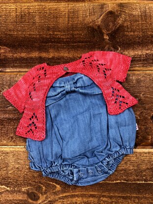 Josie May is a classic cropped cardigan/shrug. Josie May is knit top down, with the sleeves knit in the round. The lace is charted and written out.