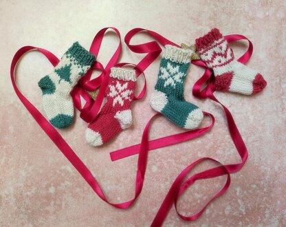 These mini socks are very quick to make - and very addictive too ! They measure about 10 cm / 4 inches long and 3.5 cm / 1.25 inch wide.