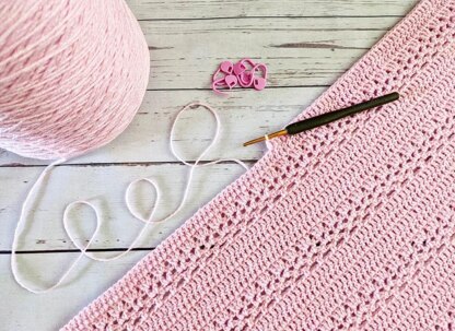 A beautiful lightweight lacy blanket design. Works great in any colour yarn and makes for a wonderful new baby gift! The blanket photographed has been made using 4 ply yarn making it the perfect blanket for those slightly warmer months.