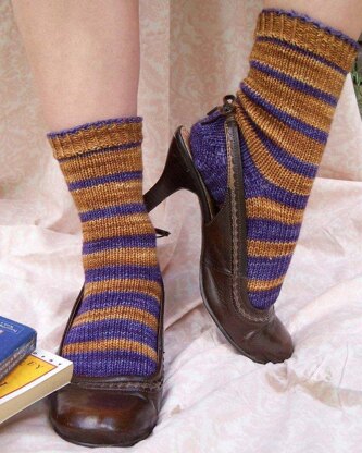 Graduated stripes of bright color make these fun socks just a touch surreal. Tone them down with neutral colors or spice them up with even brighter ones! This tightly spun superwash merino yarn makes sturdy socks that hold up to wear and tear. The MC fades away as the CC fades in with stripe patterns calculated for each size. Depending on the sizes you choose you may be able to knit two pairs of socks from a single skein.