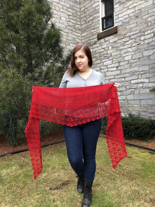 Finished Shawl Size: 86” /16” (218.5/41 cm) wingspan/depth. There are instructions included to modify the amount of lace, and also the length of the wingspan.