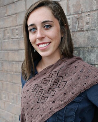 A fine gauge scarf, inspired by the motifs seen on printed bandanas. This summery layer can be tucked into a purse or tote and used to tame hair while boating, bike riding, or cruising with the top down. It does double duty by dressing up a casual outfit for dinner after a day of summer fun or to chase off the chill afterward. This easy-to-knit piece is comprised of simple eyelet motifs with wrong side rows entirely worked in purl—it makes excellent knitting for spectator sports, the beach, or a first lace project.