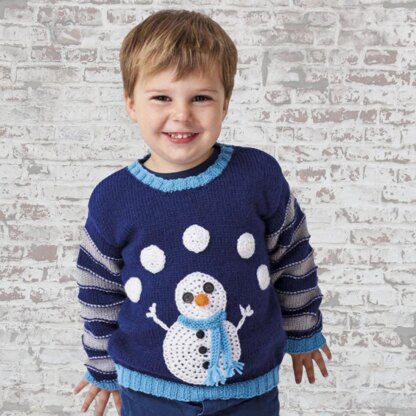 Say hello to your little one’s new favourite jumper! With the majority worked in stocking stitch and just a touch of garter stitch on the sleeves, this frosty fella is a doddle to knit. The cute snowman is crocheted and appliqued on afterwards but if you don’t fancy picking up a hook, you can always use felt circles instead.