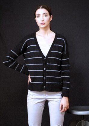 Worked in Stocking stitch with 3 x 1 Rib bands on the bodice and sleeves, this practical cardigan is lightweight and loose fitting. Wear it over a t-shirt or skivvy.