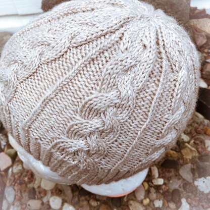 Jules is a sport weight unisex hat knit in merino and alpaca for warmth. The braided cables climb from brim to crown separated by a sea of purl stitches and a single twisted stitch representing the strong bond my sister & I have that will always stand out amongst all the separations we have had in life.