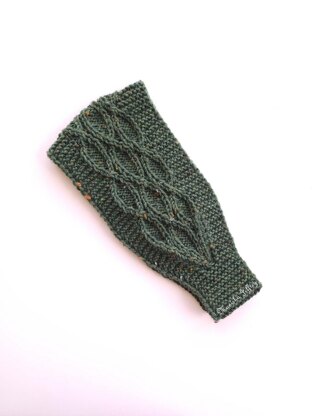Jungle Vines ear warmer is a simple and quick ear warmer pattern for the whole family. It has garter stitch edges for a snug fit and patterned tapered bottom for comfort at the nape of the neck. The body pattern has simple 2 stitch cables and the tweed yarn shows off the cables with a natural look.