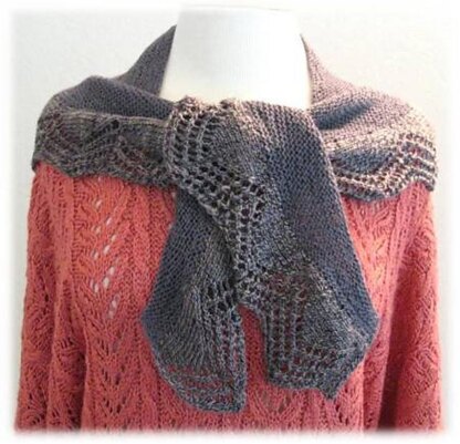 This is a beautiful shawlette worked with sock yarn. The shawlette begins with a beautiful edging worked vertically then stitches are picked up at the straight edge of the edging and the body is worked in Garter stitch and short rows to create the crescent shape. This is a wonderful project for chilly spring and summer evenings.