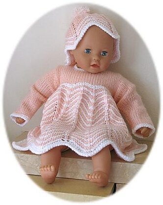 This is a beautiful ensemble consisting of a hat and a dress. The design is based on a wonderful bicolor chevron pattern. The finishing for the bottom edges of the hat, dress and the cuffs is reverse single crochet (crab stitch).
