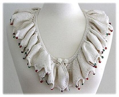 Ruffled Collar is easy and beautiful which is worked in short rows. It has pointy edges which are decorated with multicolored beads.