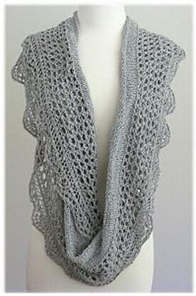 This is a möebius scarf that uses Cat Bordhi’s möebius cast-on. After a few rounds of simple Stockinette stitch, the pattern turns into an easy lace pattern. The scarf is finished with a lovely lace edging that will bind off the scarf and adds to the beauty of the design.