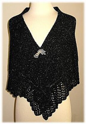 This is a trapezoid-shaped shawl worked from one end to the other. The basic pattern for the shawl is Garter stitch and the edge is knit along with the body of the shawl. The beautiful metallic yarn creates a Starry Night look. Therefore, I call the design Setara which means "The Star". The beauty of this type of shawl is that the edging is worked along with the shawl itself and when the body of the shawl is done the shawl is ready for blocking.