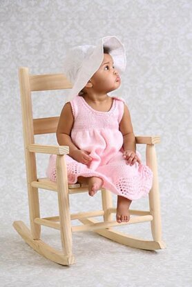 This beautiful sleeveless dress is just perfect for a little girl. The bottom edge of the dress is decorated with a Feather and Fan pattern which is perfect for a new lace knitter. The shoulders are joined with beautiful buttons for easy dressing.