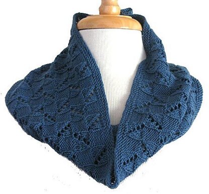 This cowl design is worked in round with a very easy lace pattern. The pattern is easy enough for someone who has not tried knitting lace before. I provide the instruction in written text and chart form. Choose whichever form you like better.