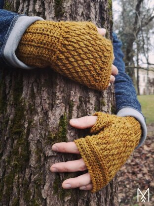 Kaarna is a Finnish word for tree bark, which was the source of inspiration for these warm crochet fingerless gloves.
