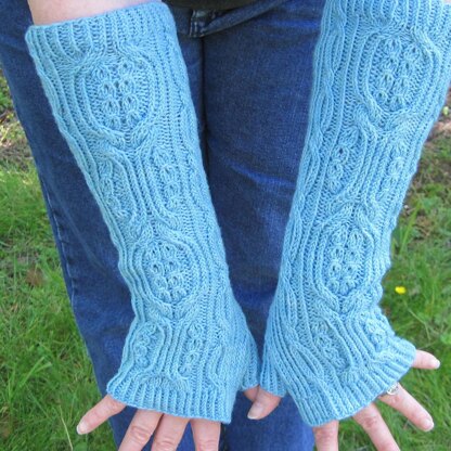 For “Cable-Lovers” everywhere, this is the fingerless mitt pattern for you. There are two distinct cables in the mitt. The center cable is quite striking, and unusual. The underside cables are also quite unique, but thinner. If you are a cable knitter, this one will be fun for you to both make and wear and will allow you to text, type and knit in style and warmth.