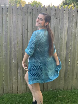 Kaleidoscope Cardi is named after the the gorgeous shifting shapes and spaces a Kaleidoscope create. The cardigan comes to mid thigh and positive ease. The eyelets make the cardigan breathable and perfect for spring, summer and early fall days or nights.