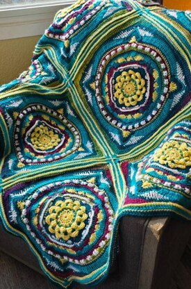 Colorful square pattern that can be used as an individual square or several combined to create an afghan. The square size is 17” and the afghan size is 50”. The amount of yarn needed for each individual row is specified based on the yarn used in this pattern. This will help you determine how much yarn you need of colors you want to use. Great for using your scrap yarn. The number of skeins used for this pattern: Yellow (Loops & Threads) – 3 White (Loops & Threads) - 3 Aqua/Turqouise (Loops & Threads) - 4 Pagoda (Caron Simply Soft) - 3 Multi color #28 (Loops & Threads Facets) - 3