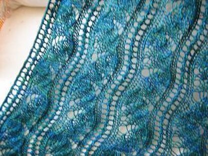 A graceful lace pattern inspired by the calm and beauty of the sea. It is designed to be knit in 2 halves, from cast-on edge to center.