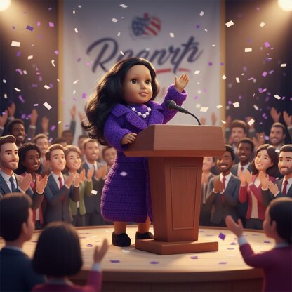 This is my version of the outfit that Kamala Harris wore on her Inauguration day. So much fun creating this piece of history. The outfit is done in US terminology. A fairly easy pattern to follow but you do need to know basic crochet stitches and how to follow a pattern.