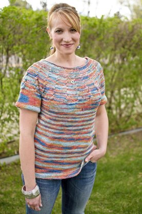 Made with the soft and supple yarn, Cottonista. This full yoke sweater with delicate cable details is perfect for warmer weather. Made in the round from the bottom up with a pin tuck hem at the hem and sleeves. Plus, the yarn is a real treat.