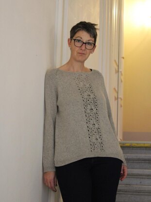 Karlsbad is a top down raglan sweater with short or long sleeves and a nice lace pattern at the front. The neckline can be framed by a rolled edge or a crew neck.