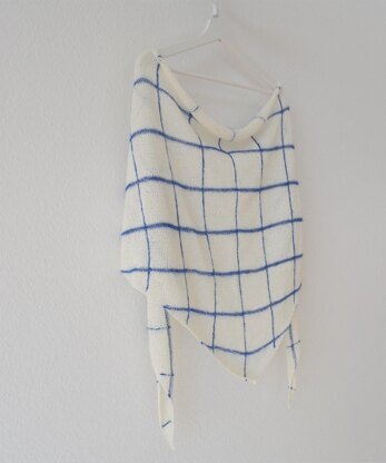 Karoline is a light spring/summer shawl with a checked pattern. Lines are worked with little bit of mohair so that they pop up more. The use of the Ito yarns makes it to an accessory for every day.