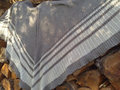 Die Maße des Originaltuches - gestrickt aus 300g YakSilk - betragen 210 cm entlang der oberen Kante und 85 cm von der Kante zur Spitze.