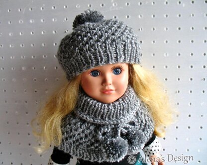 Easily knitted, stylish Doll Hat Set. This pattern set is to make a Pom-Pom Hat and Collar for American Girl or similar 18 inch Doll. The hat and collar are worked in rounds from bottom to top.