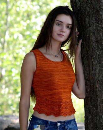 Elegant and refined are great adjectives to describe this top worked in the round from the bottom and shaped using short-rows. Easy to dress up or down, this gorgeous top was inspired by the grace and sophistication of Katherine Hepburn. The raised bottom edge in back may help channel her famous feisty nature, too! The only seams are the shoulders, which are joined using three-needle bind-off. The lace pattern is easy to memorize, then stockinette speeds work along so that you’re done in no time. Simple edges worked in garter finish everything off nicely.