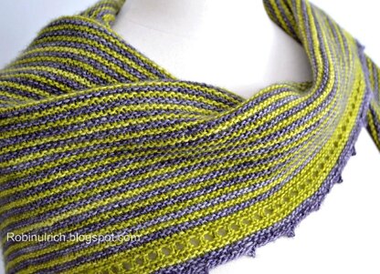 Knit from the top down in a versatile, wide triangle silhouette, Katriel’s simple garter stitches form graphic textural stripes neatly defined by an eyelet border and an easy, delicate picot edge.