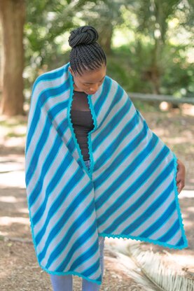 The wrap is knit diagonally and works up fairly quickly. The constantly changing colours makes it a fun to knit project and the simple stockinette stitch is a great option for a relaxing project.