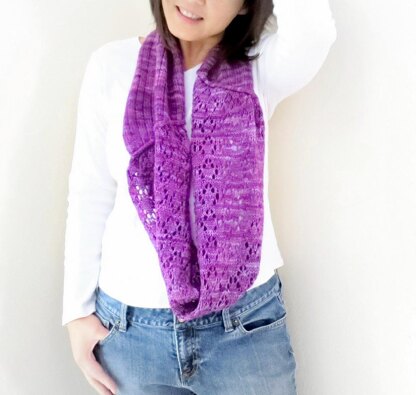 A cowl with both Cables and Lace motifs, worked flat with first and last rows grafted together.